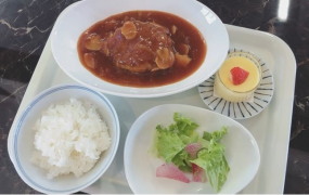 | (ハンバーグ・サラダ・ご飯・汁物・デザート) | ||