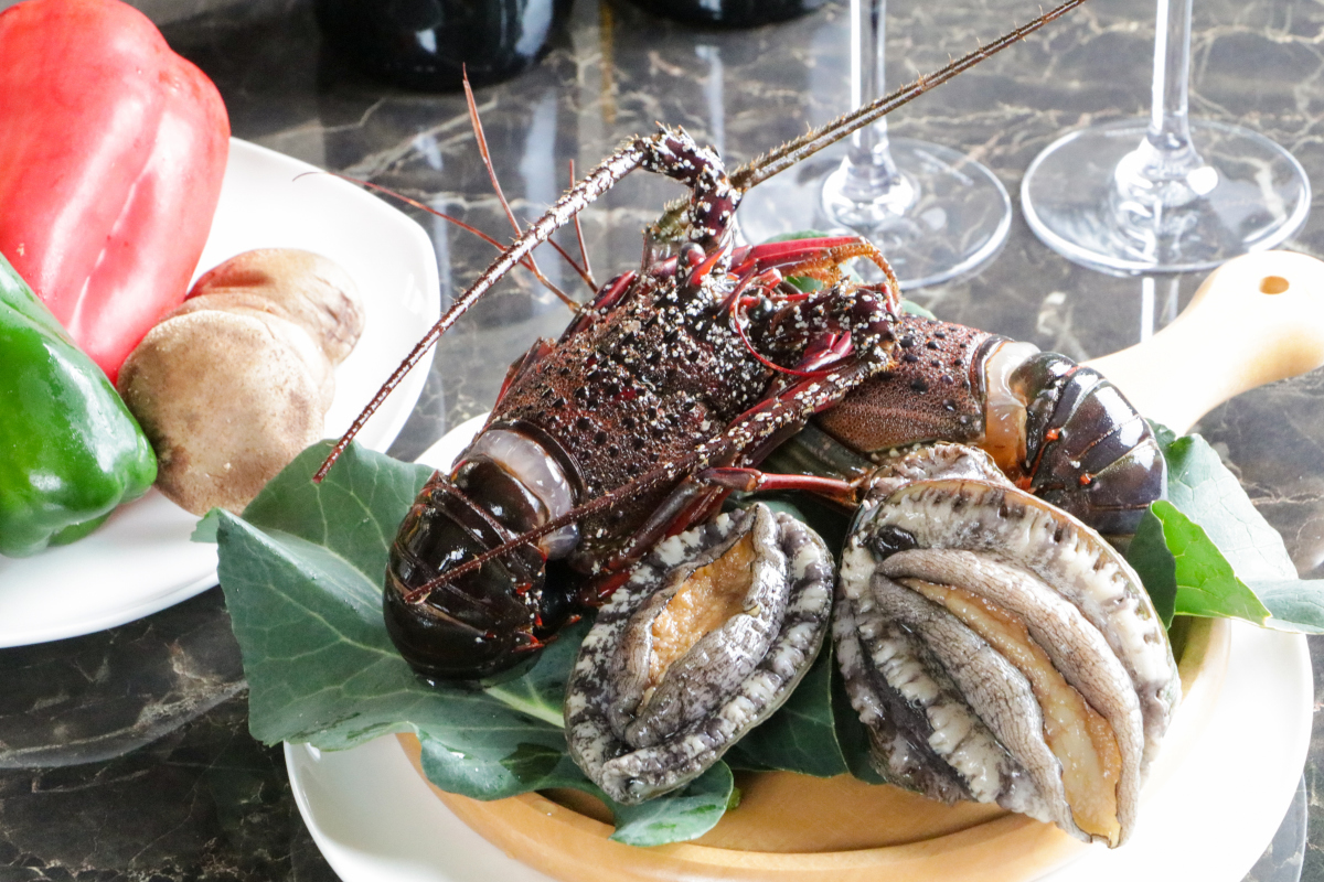 | (小鉢・焼野菜・海鮮3種・伊勢海老1/2・サラダ・魚介3種・ご飯セット) | ||
