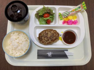 | (ハンバーグ・サラダ・ご飯・汁物・デザート) | ||